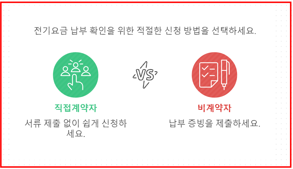 비계약자: 전기요금 납부 증빙 서류(고지서, 영수증 등)를 제출해야 합니다.