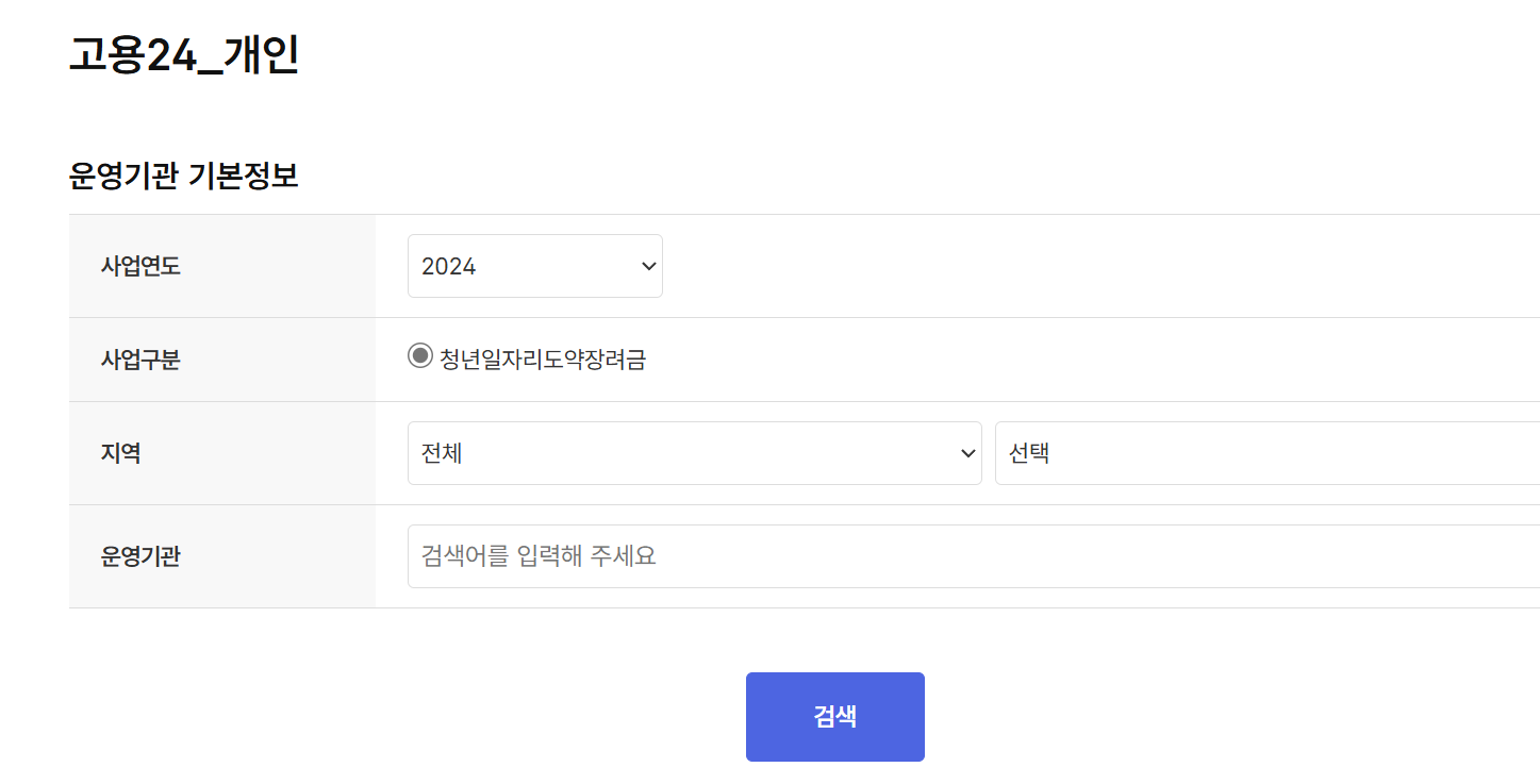 1. 사업 참여 신청: 고용24 누리집(www.work24.go.kr)에서 사업장 소재지 관할 운영기관을 선택하여 사업 참여를 신청합니다.