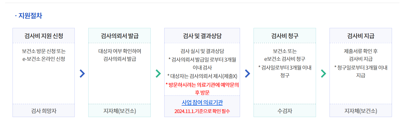 검사비 지원 신청: 보건소 방문 또는 온라인 신청