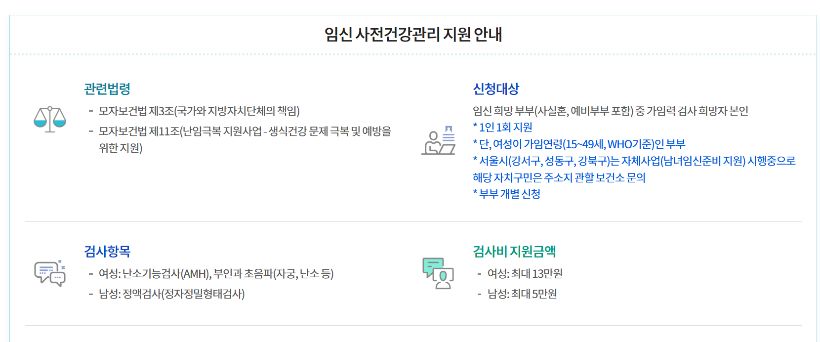 서울시 제외: 서울시는 별도로 유사한 '남녀 임신준비 지원사업'을 운영 중